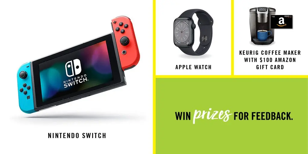 The survey only takes about eight minutes and enters anyone who responds into a sweepstakes to win one of three prizes: Apple Watch Series 8; Nintendo Switch; or Keurig coffee maker with $100 Amazon gift card. Take your chance to snag an apple watch or to fulfill that Amazon wish list you’ve been saving.